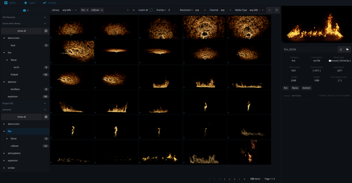 Element libraries play a significant role in the daily VFX workflow. It is very important that these libraries are well structured and organized so artists can quickly find the element that best fits the shot.