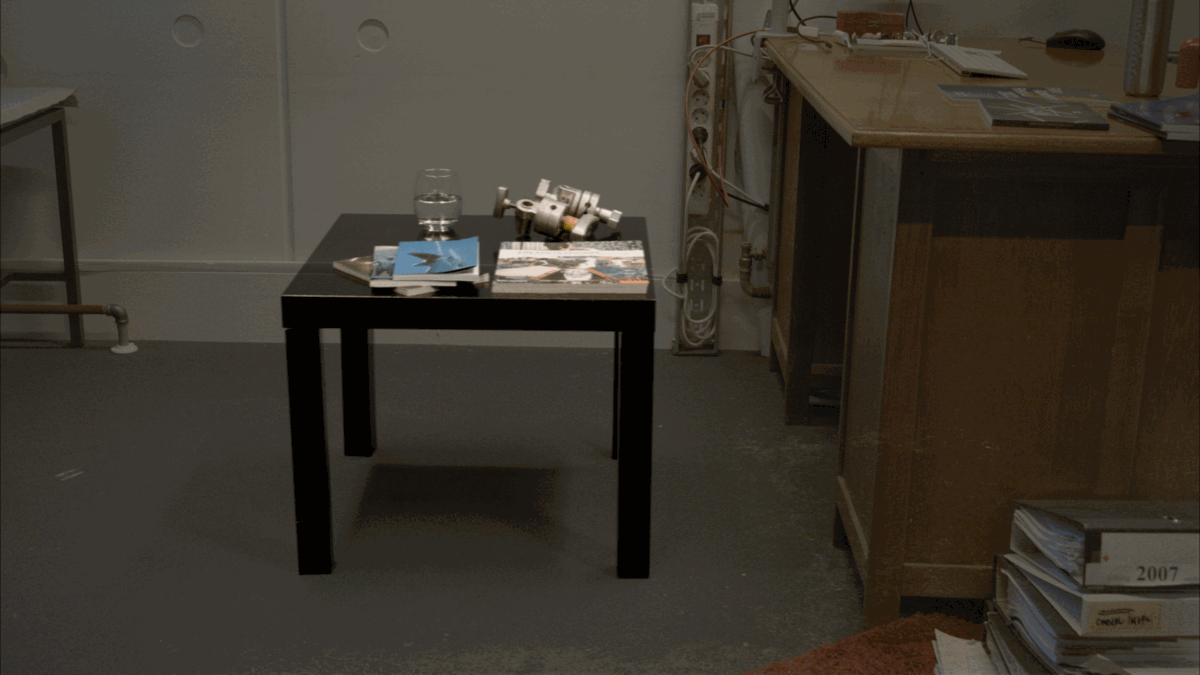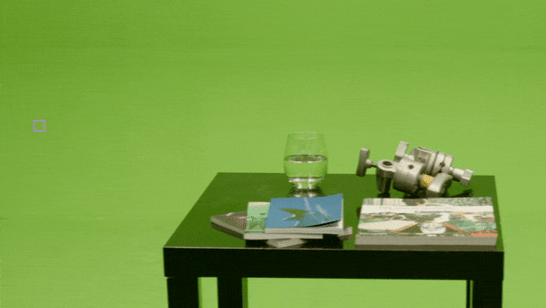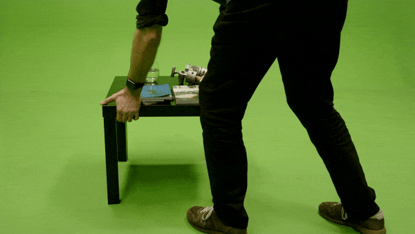 Our small black table is quite glossy and thus reflects quite a lot of the green behind it. This results in the keyer ‘thinking’ this is part of the background, rather than the foreground and consequently makes the top of the table a bit transparent.