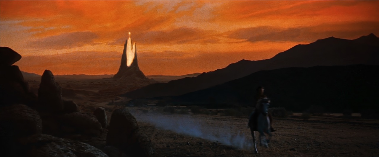 Craig Barron: That amazing shot was done by Jim Danforth. If you look very closely, as Atreyu rides behind the crystal, you can see his reflection inside it. Jim also created the shot when Atreyu is approaching the Oracle. He did this work as a freelance matte artist at his own shop for us down in Los Angeles.